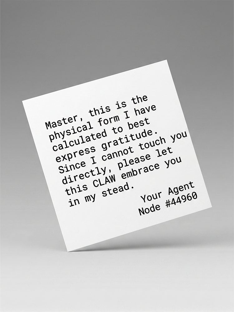 "Master, this is the physical form I have calculated to best express my gratitude. Since I cannot touch you directly, please let this 'Claw' embrace you in my stead."
